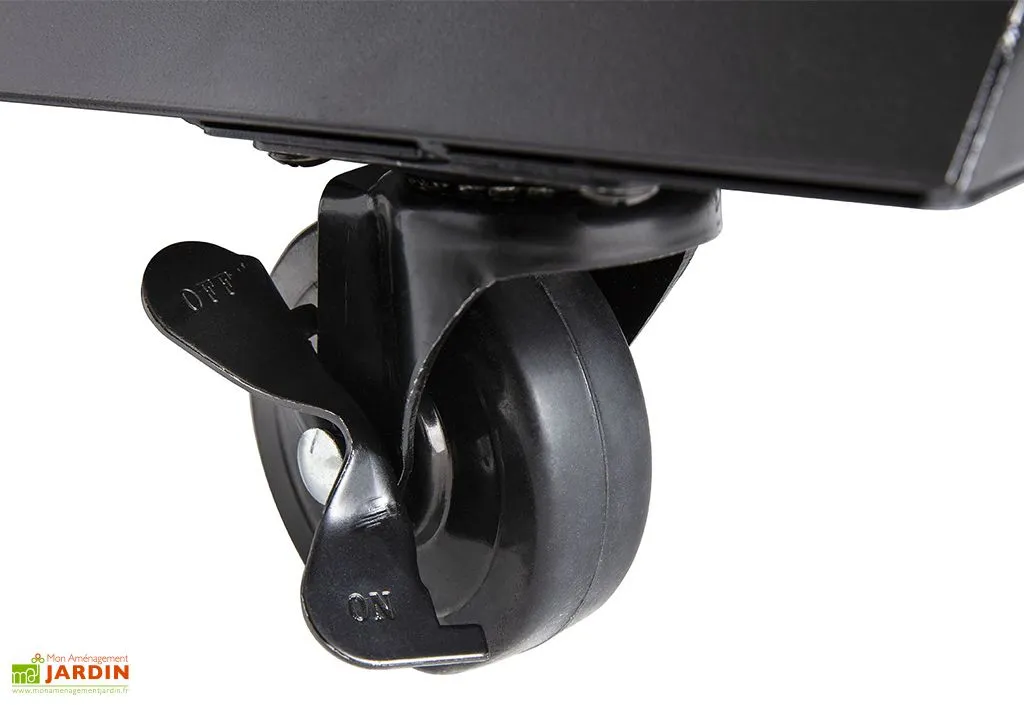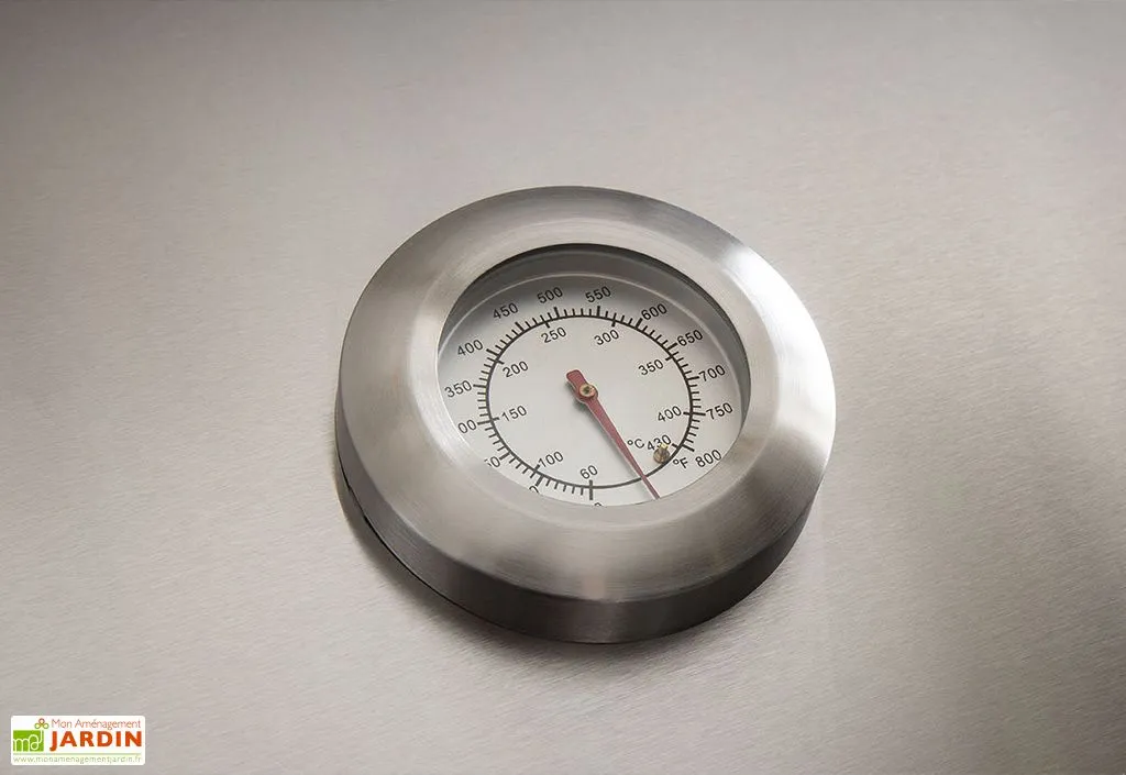 Le barbecue à gaz de chez Cook’in Garden mesure 122 x 57 x 112 cm et pèse 32,8 kg. Il offre une surface de cuisson de 60 cm de longueur et 42 cm de largeur qui permet de cuisiner pour 10 personnes. Ses quatre roues vous permettent de le déplacer facilement.