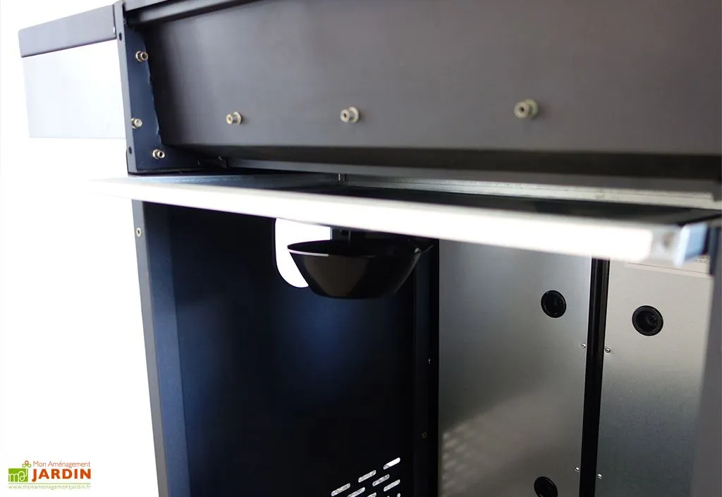 Le barbecue est compatible avec du gaz butane ou propane et possède un raccordement au gaz simple et sécurisé. Il possède une puissance de 11,5 kW. Ses trois brûleurs s’allument indépendamment par Piezo.