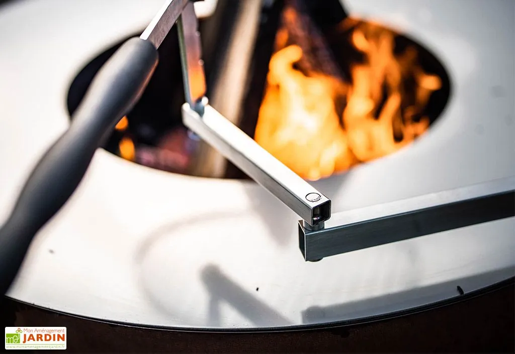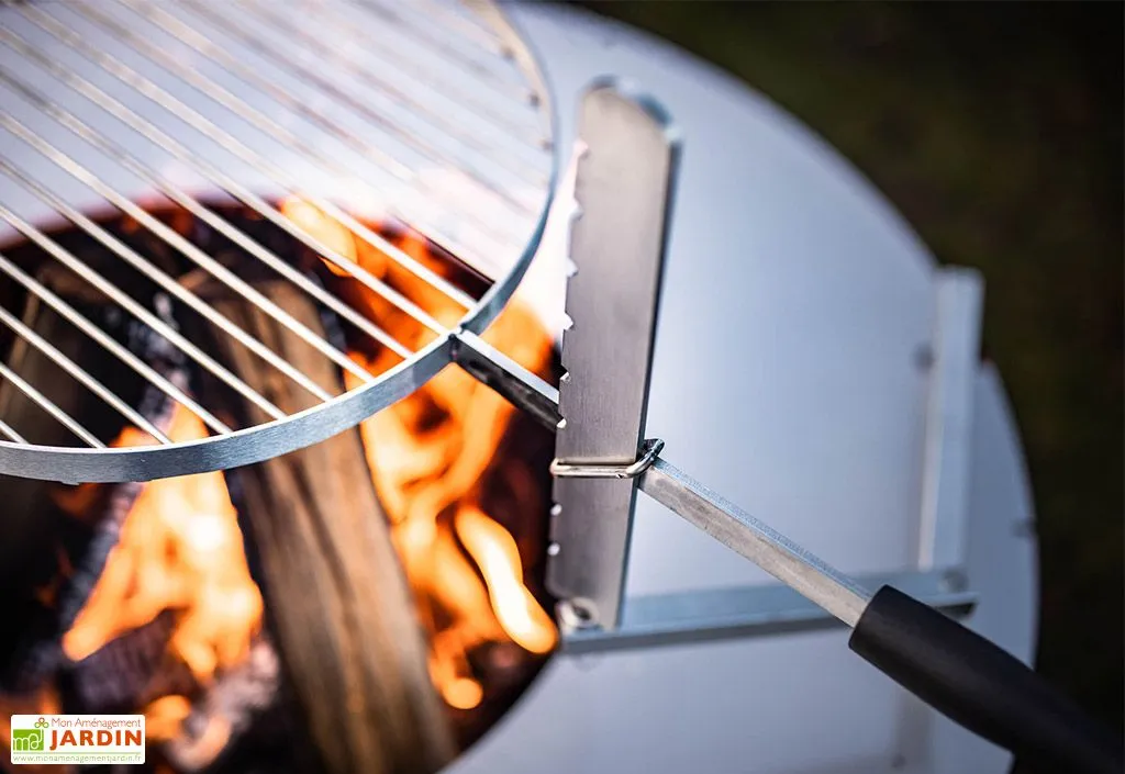 Cette grille en inox est spécialement conçue pour le brasero plancha Boule de la marque Feu du Jardin. Elle affiche un diamètre de 38 cm et possède un support articulé permettant d’adapter la hauteur de cuisson selon 9 positions. Cette grille pour brasero vous permettra donc de faire cuire vos aliments, mais également de maintenir un plat au chaud, à condition que celui-ci soit conçu pour résister à de hautes températures.