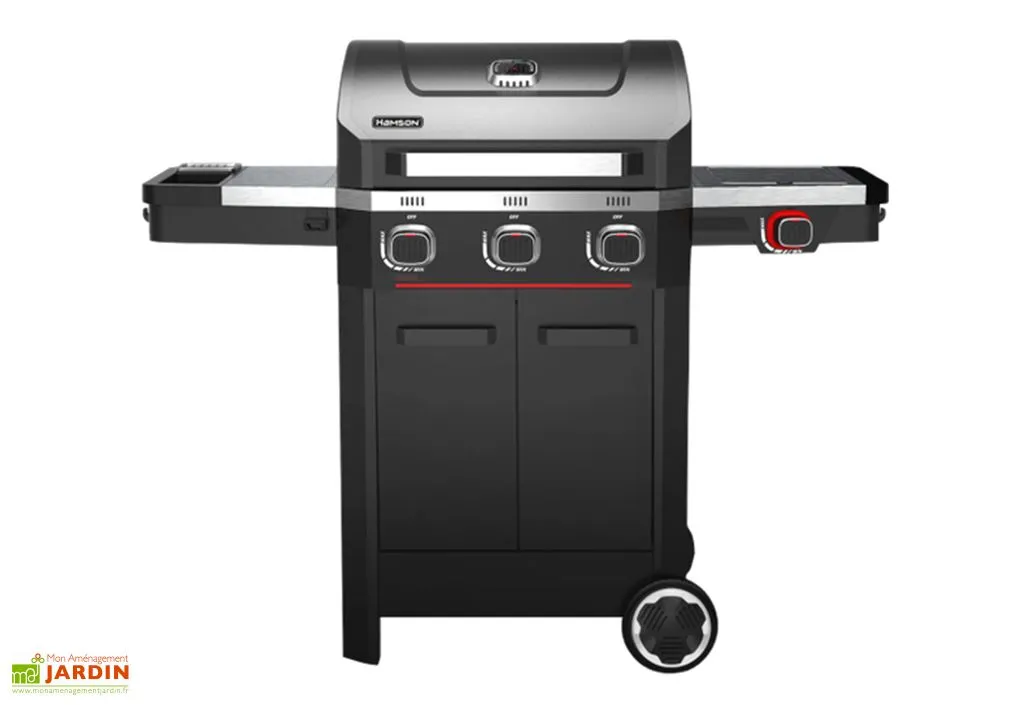 Le barbecue Hamson Mercury 3T est fabriqué en inox, un matériau robuste qui lui confère une belle résistance face aux intempéries et à l’humidité. Son élégante finition noir mat lui permettra par ailleurs de s’intégrer plus facilement dans votre extérieur tout en y apportant une touche de modernité. Ce barbecue est de plus monté sur un chariot à roulettes, vous permettant ainsi de le déplacer facilement, dès que la météo le permet !