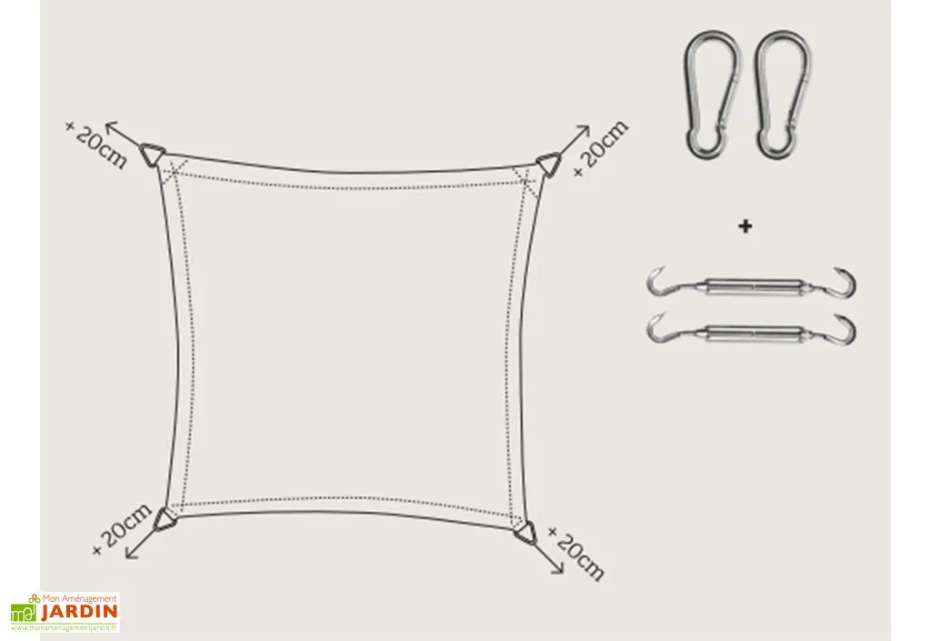 Le voile d’ombrage extérieur est vendu seul sans les accessoires de fixation. Ces derniers sont très importants pour le montage de la toile tendue, et ils sont disponibles dans l’onglet « accessoires ».