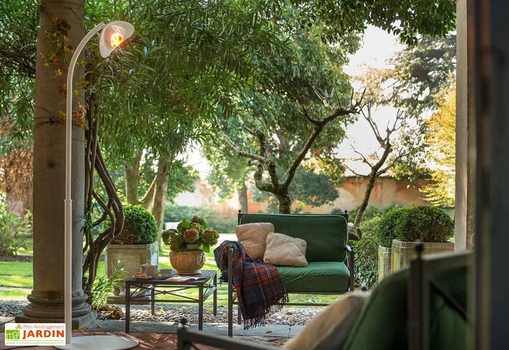 Votre lampadaire à infrarouge de chez Phormalab est disponible dans 4 coloris : noir/noir – noir/blanc – blanc/noir – blanc/blanc. La structure en aluminium moulé sous pression est imperméable aux jets d’eau (IPX5). Ce lampadaire haut de gamme est conçu en Italie, il doit son esthétique au designer Antonio Di Chiano et sa qualité de chauffe à son ampoule infrarouge, d’une durée de vie d’environ 5000 heures, qui dispose de la technologie HeLeN de chez Philips-Dr. Fischer. Le lampadaire chauffe immédiatement après l’allumage. Avec ses 2000 Watts, la lampe permet de couvrir une surface de 12 à 20 m². Ce chauffage, qui marie puissance et élégance, vous permettra de profiter de votre terrasse lors de longues soirées d’été. La rotule mécanique permet d’orienter la lampe. La garantie est de 2 ans.