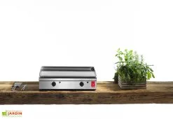 Cette plancha de la marque Pla.Net en inox dispose de dimensions de 81 x 50 x 20 cm et est accompagnée d’un chariot fermé de 140 x 50 x 77 cm ainsi que d’un couvercle amovible. Le chariot de cette plancha est idéal si vous souhaitez stocker des produits nécessaires à la préparation de vos aliments afin de les avoir à portée de main, le couvercle quant à lui permettra de la protéger des agressions extérieures quand vous n’en n’avez plus besoin. Le chariot ainsi que le couvercle amovible confèrent un poids total de 56 Kg avec la plancha.