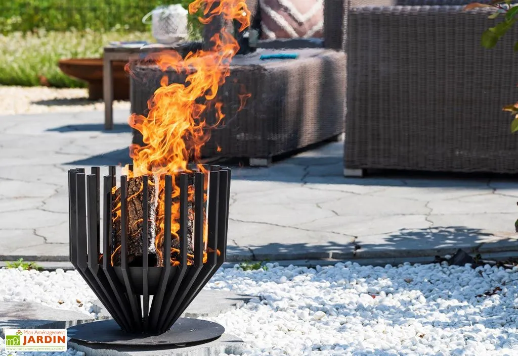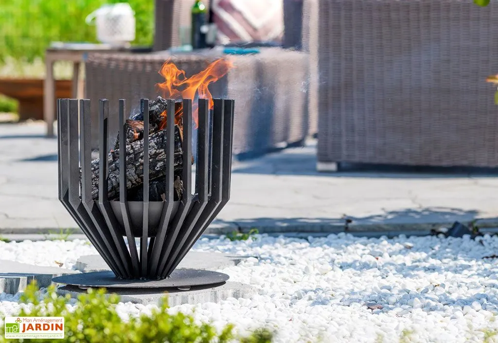 Ce braséro possède un style industriel et saura habiller votre extérieur, vous pourrez le déplacer facilement car il pèse au total 7,6 kg. Il possède un revêtement en poudre noir qui résiste à la chaleur. Afin de pouvoir le garder le plus longtemps possible, il est recommandé de nettoyer le cadre le lendemain ou le surlendemain après refroidissement.