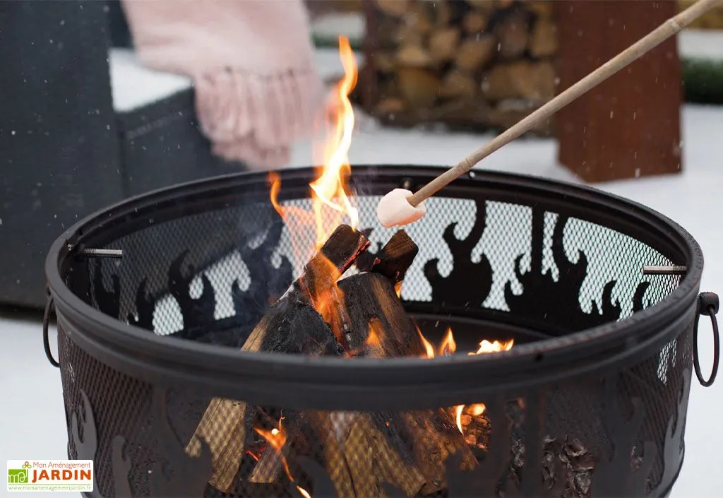 Ce braséro barbecue est fabriqué en acier de 1,5 mm d’épaisseur. Il est équipé d’une grille de cuisson, d’un pare-étincelles et d’un tisonnier.
