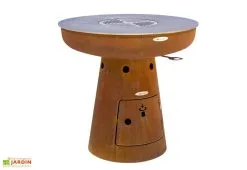 Le corps en acier du braséro est travaillé de façon artisanale et son oxydation volontaire permet de lui offrir un look vintage et vieilli sans pour autant altérer sa solidité. La plaque de cuisson et la grille sont, quant à elles, en inox pour griller vos aliments en toute sécurité. Il n’existe ainsi aucun risque de dépôt de rouille sur les grillades. Le récupérateur de cendre se trouve derrière la trappe de visite. Il est accessible facilement pour une manipulation aisée.