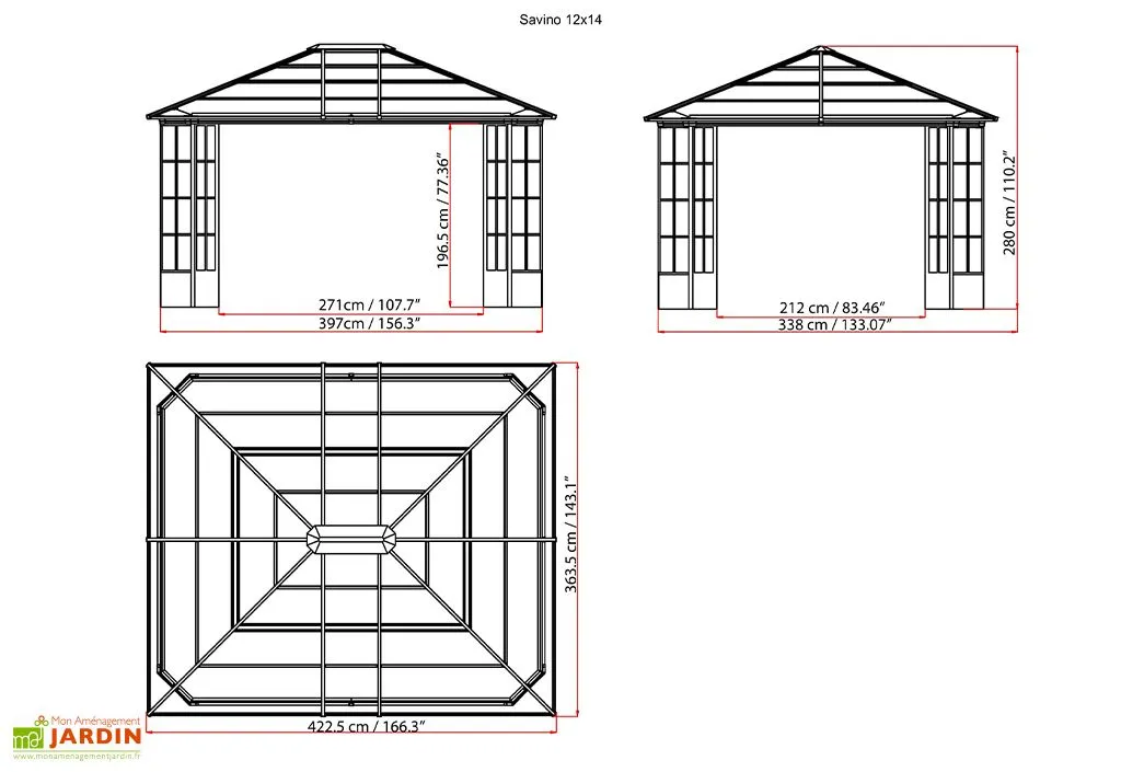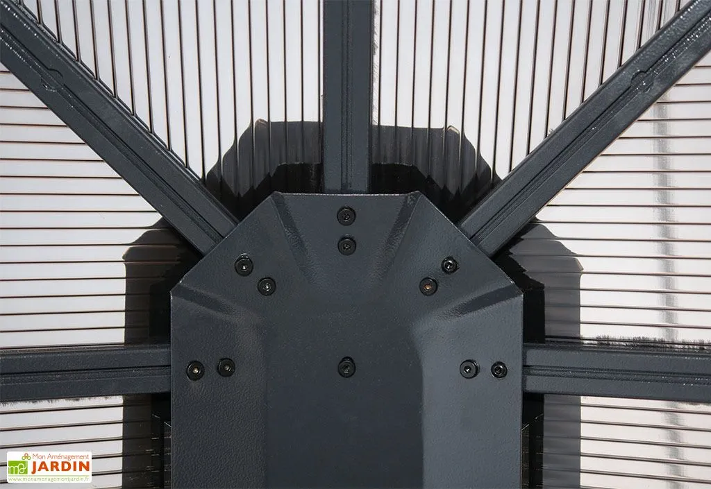 Ce pavillon de jardin vient du célèbre fabricant canadien Sojag. Il affiche un design moderne et distingué qui constitue un véritable intemporel. Ses dimensions de 423 x 363 cm vous offrent assez de place pour aménager un petit salon de jardin par exemple. La tonnelle de jardin est composée d’aluminium thermo laqué et ne craint pas la rouille. Son toit est constitué de lames double paroi de 8 mm d’épaisseur qui sont étanches et vous protègeront de la pluie, de la neige et du soleil. Le pavillon est donc adapté à la vie en extérieur sur toute l’année et n’aura pas besoin d’être démonté en hiver.
