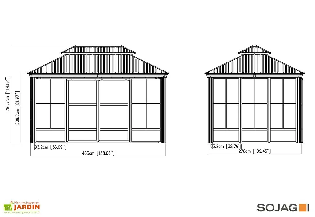 Ce pavillon fermé fabriqué par Sojag vous permet de profiter de votre jardin tout en restant parfaitement protégé(e) des intempéries. La journée ouvrez ses deux doubles portes (une à l’avant et une à l’arrière) pour laisser entrer l’air frais et en soirée refermez le tout pour rester à l’abri des moustiques et autres insectes.