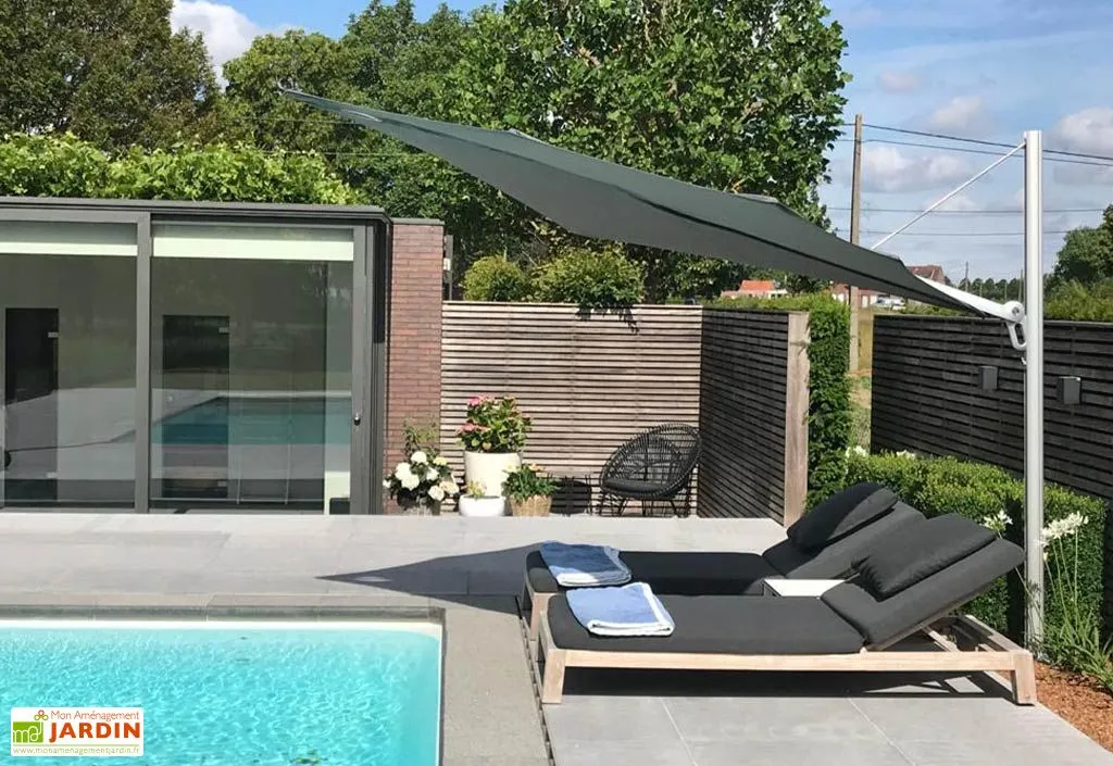 La toile en acrylique a reçu de nombreux traitements qui la protègent contre les UV, la décoloration, les variations de température (entre -20° et +70°C) et contre les taches. Différentes inclinaisons de la toile sont possibles pour vous protéger du soleil tout au long de la journée.Vous pouvez également ouvrir et fermer la toile facilement grâce à un système d’éventail. Lorsqu’elle est totalement fermée elle vient se plaquer contre le mât pour prendre le moins de place possible. Une housse de protection est incluse.